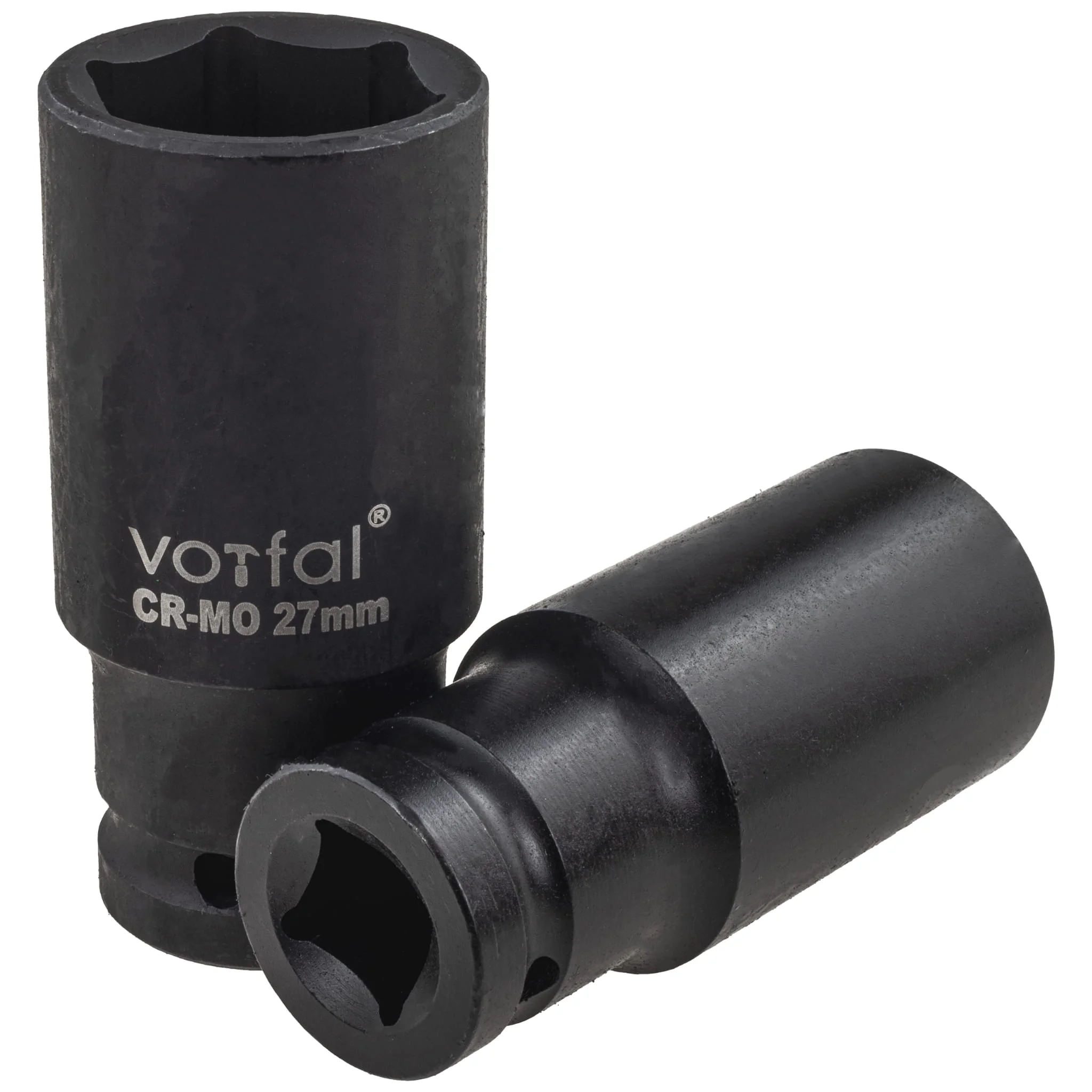 Specjalistyczne nasadki udarowe, współpracują z urządzeniami pneumatycznymi, które pracują w bardzo ciężkich warunkach pod zmiennymi obciążeniami. Nasadki wykonano ze stali chromowo molibdenowej CrMo, która gwarantuje długą żywotność przy pracy w cyklach ok. 5000 udarów na minutę. Stal CrMo to unikalna stal stopowa, która posiada 2 krotnie większą wytrzymałość na rozciąganie od zwykłej stali węglowej oraz 3 krotnie wyższą granicę plastyczności, te cechy powodują, że nasadki przez wydłużony czas zachowują swój nominalny wymiar oraz nie pękają pod wpływem pracy udarowej.