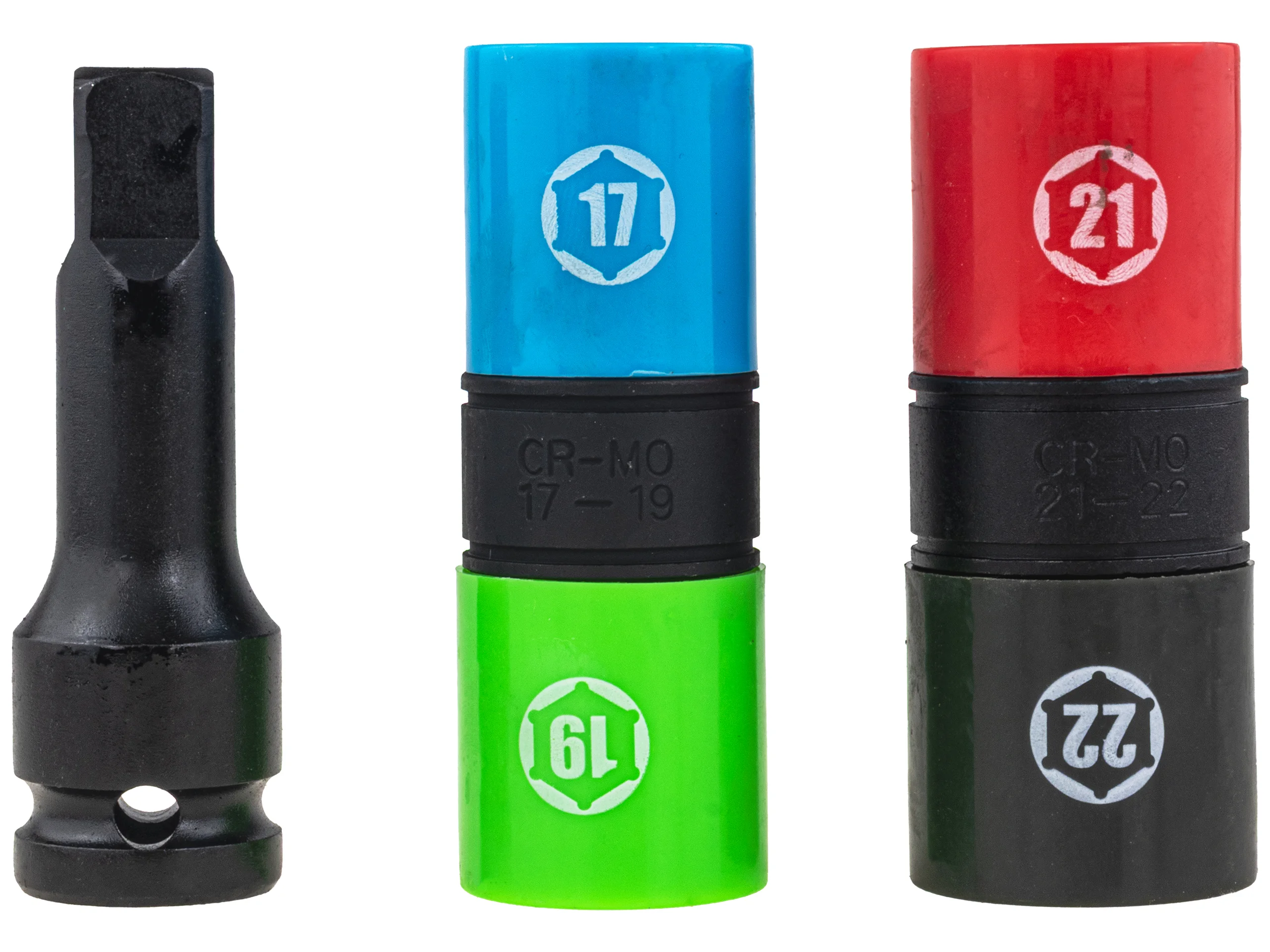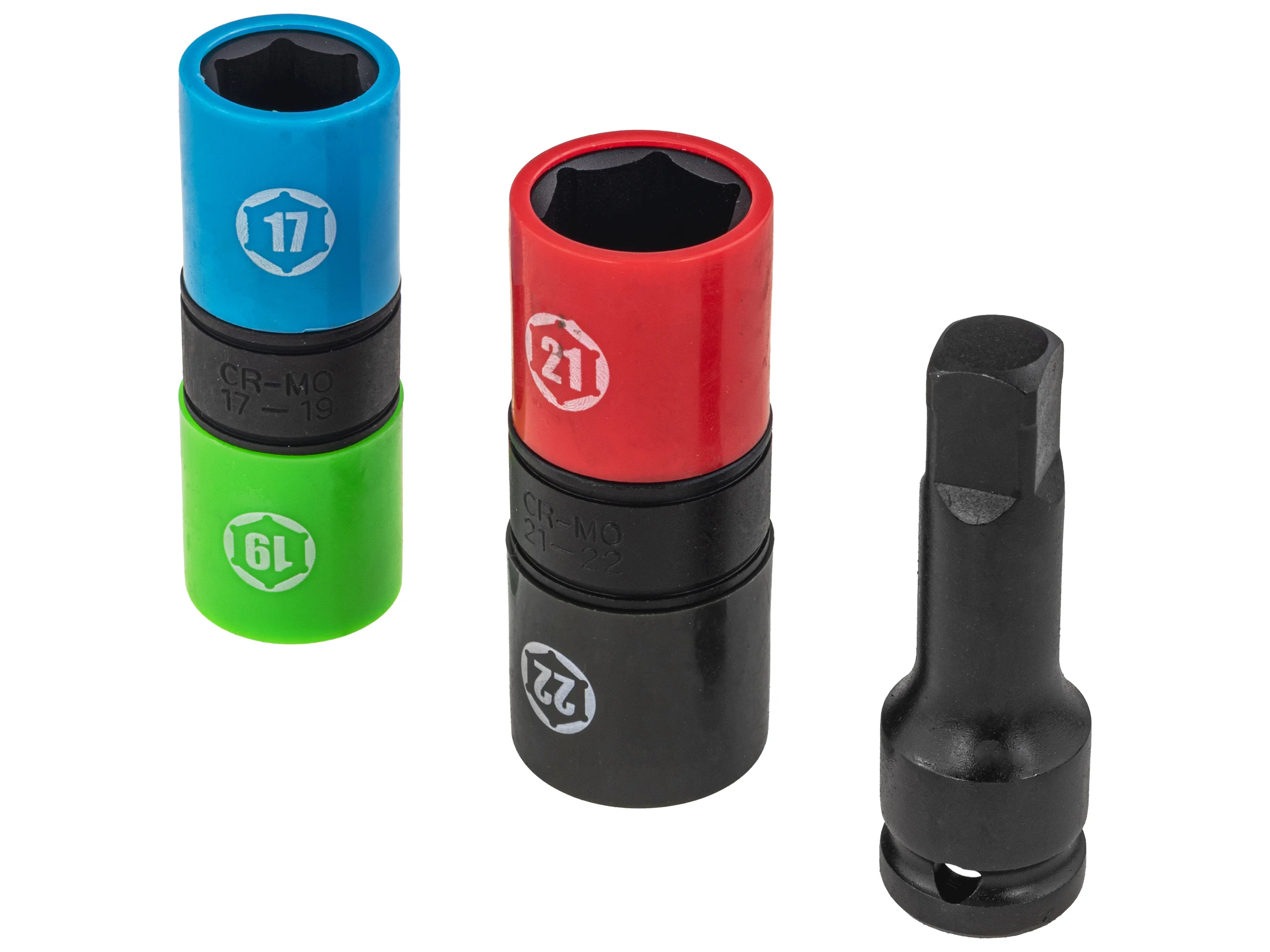 ZESTAW NASADKI UDAROWE DWUSTRONNE DO KÓŁ FELG ALU 17-22 mm + PRZEDŁUŻKA 1/2
