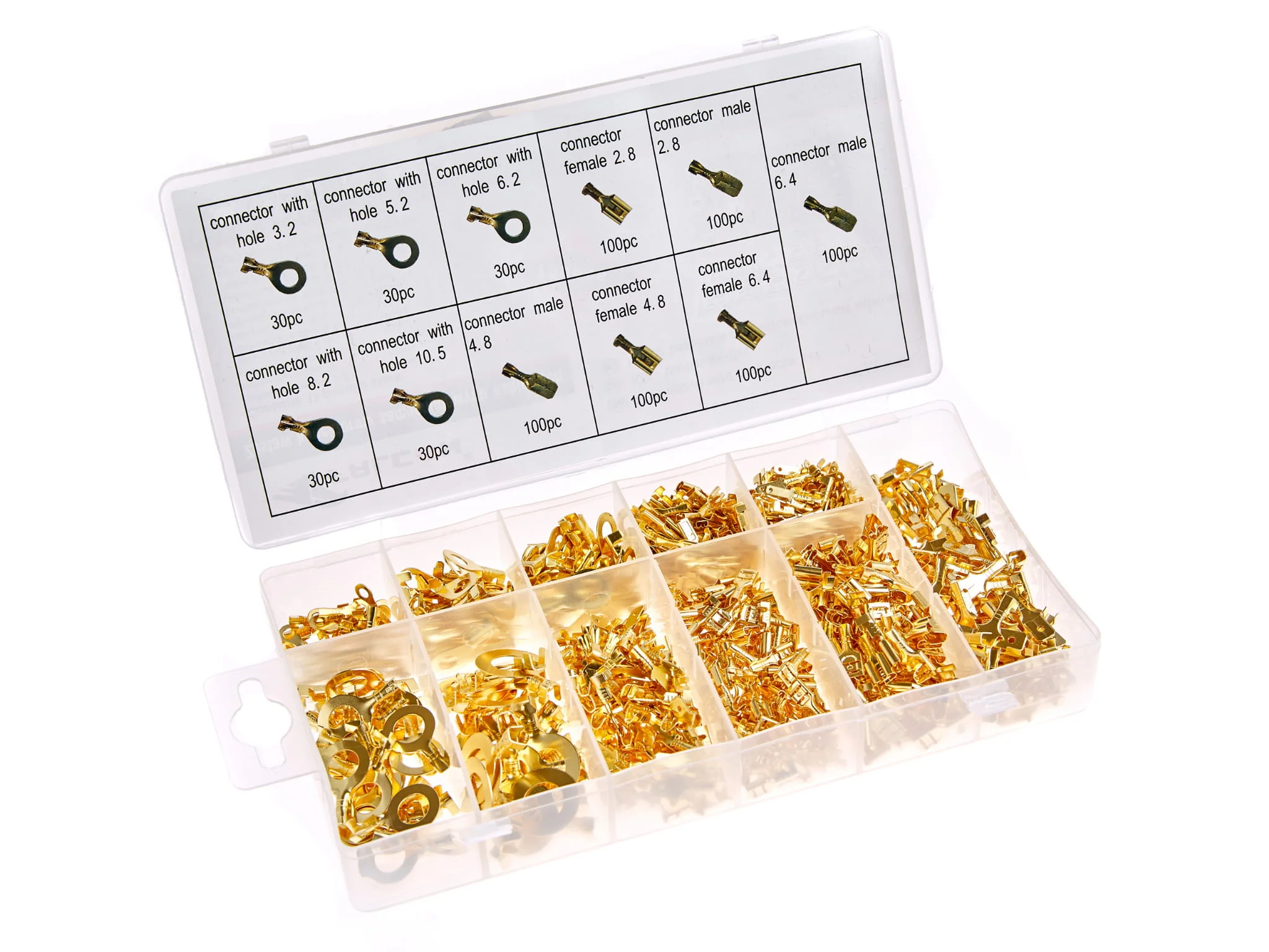 Konektory zapakowane są w poręczne pudełko typu sortownik.